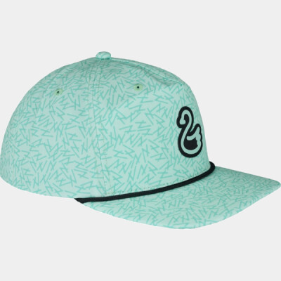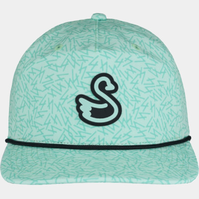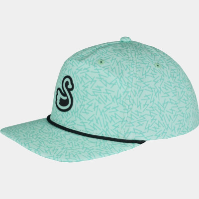 88% polyester, 12% spandex waterproofed; reload; 5-panel construction; Slightly curved bill with rope; Adjustable snapback closure; This unique Swannies design includes a Swannies rubberized logo patch on the front of the hat, not removable;